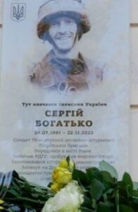 31-річний солдат Сергій Богатько загинув 22 листопала під час виконання бойового завдання в Донецькій області.