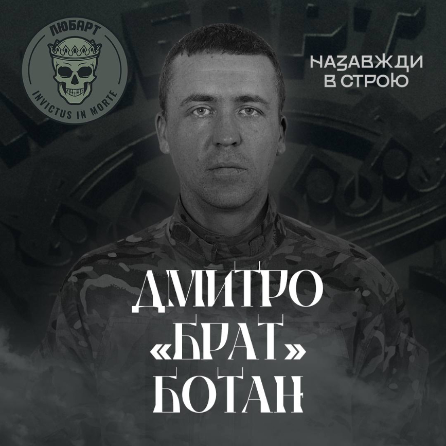 Боєць луцького окремого загону спеціального призначення «Любарт» Дмитро Ботан із позивним «Брат» загинув 1 жовтня 2023 року. Життя зв’язківця розвідувальної роти обірвалося під час виконання бойового завдання внаслідок обстрілу противника поблизу населеного пункту Оріхів Запорізької області.