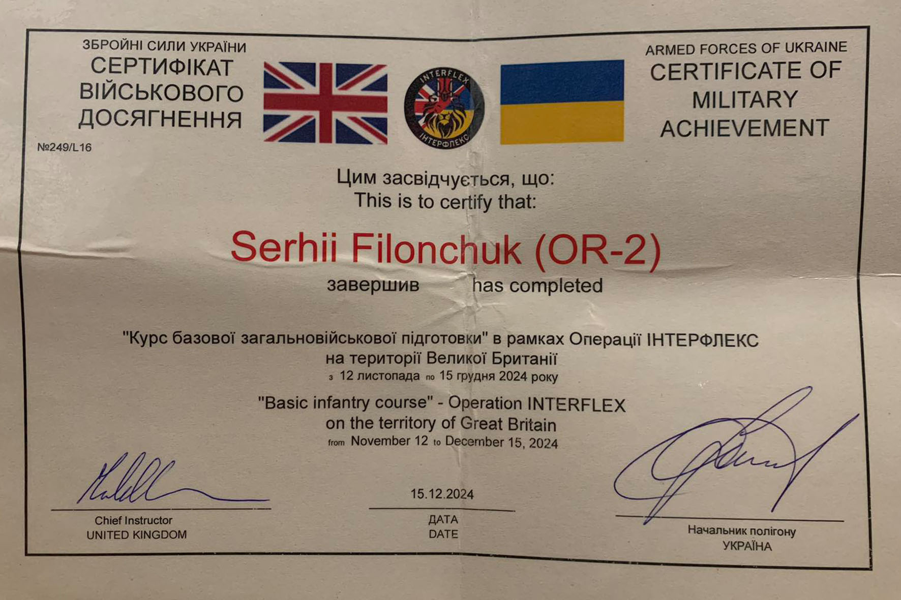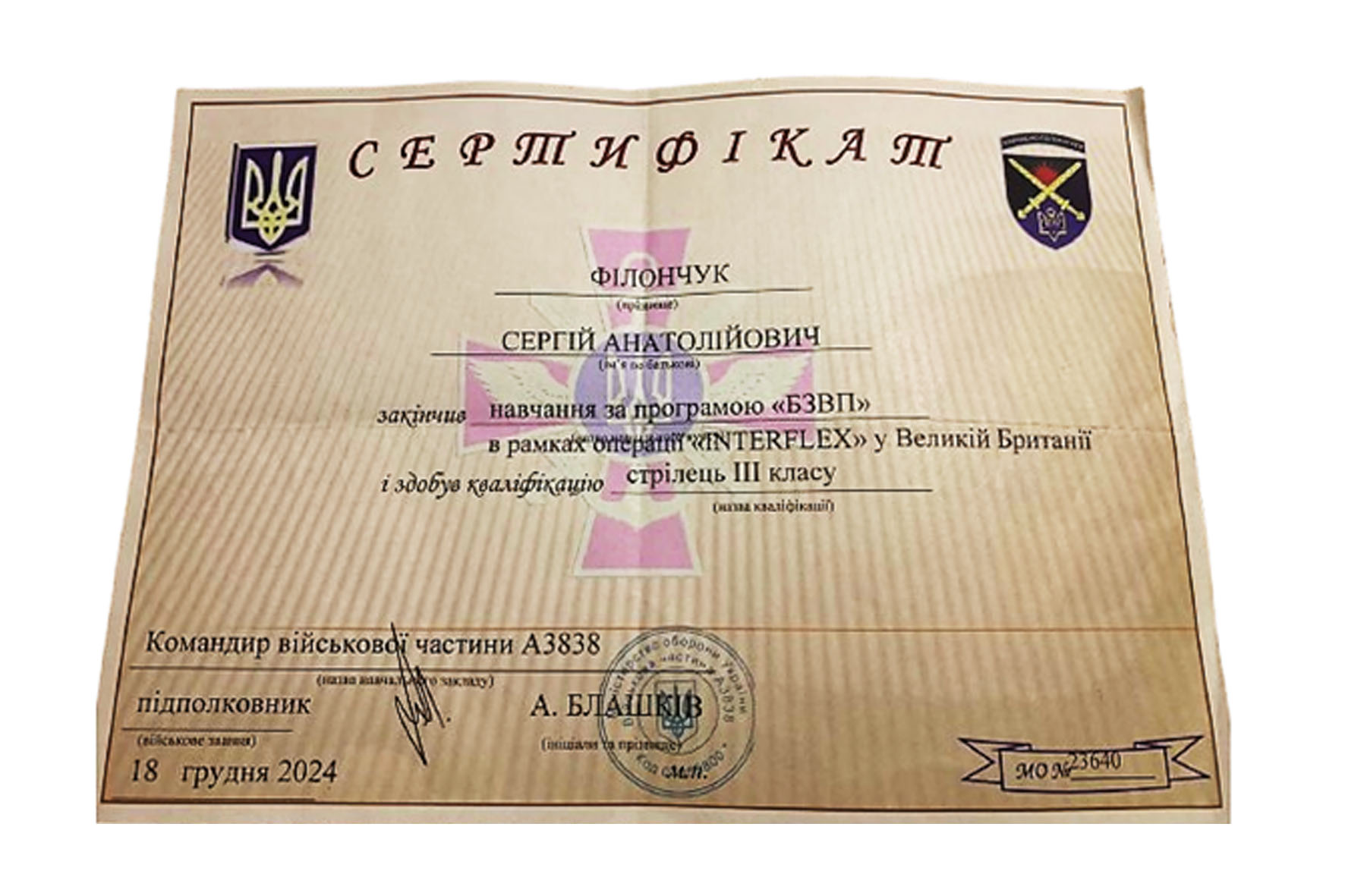 Фото Сертифікат військового досягнення