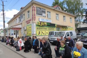 На міській площі Незалежності поруч з домовиною лунали останні слова для захисника та його родини. Жалобну процесію, яка рухалася містом, з надзвичайною повагою та скорботою зустрічали містяни.