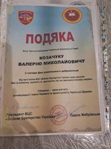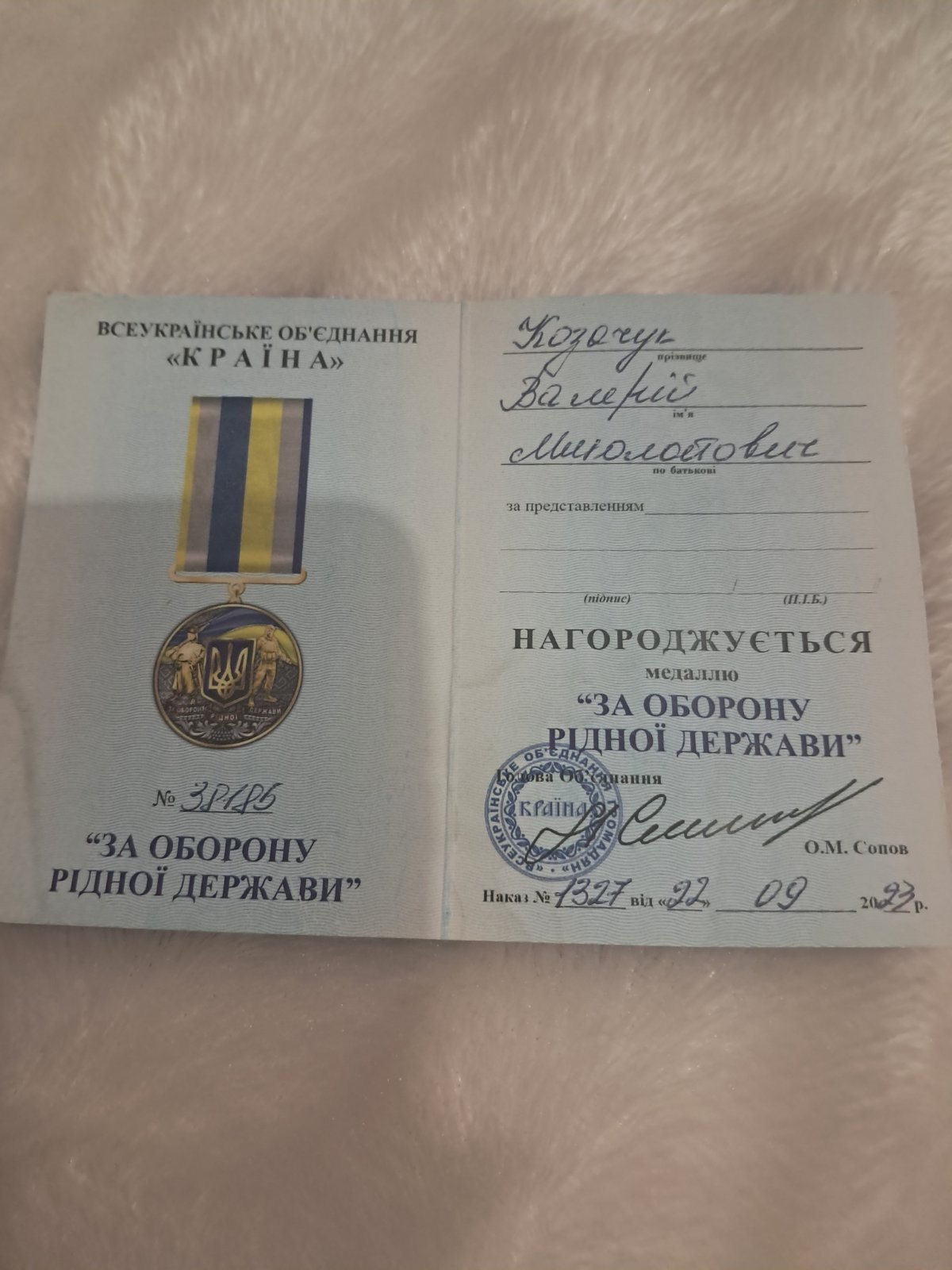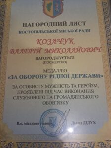На жаль, 14 червня в районі населеного пункту Сторожеве Донецької області 46-річний Валерій Козачук загинув внаслідок влучання протитанкової керованої ракети в машину. Він отримав несумісні з життям поранення, коли разом з іншими воїнами виїжджав на позиції, щоб підмінити своїх побратимів.