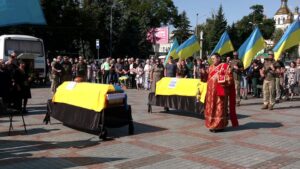 У Рівному 9 серпня на майдані Незалежності попрощалися із 29-річним Юрієм Лавренчуком та 34-річним Миколою Назарчуком. Чоловіки загинули 4 серпня 2023 року поблизу населеного пункту Нью-Йорк Донецької області