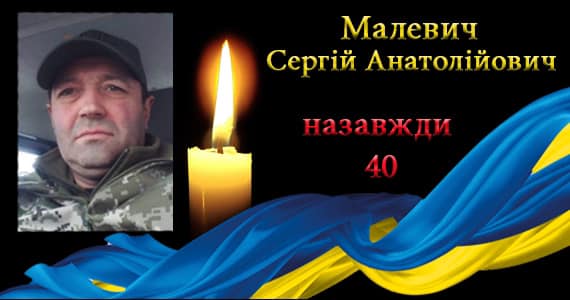 10 серпня 2023 року загинув наш земляк, відважний воїн, Малевич Сергій Анатолійович.
