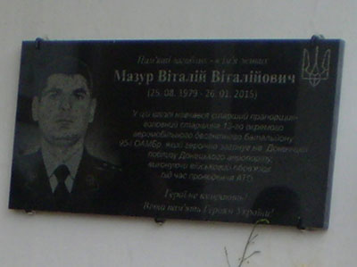 Відразу у трьох закладах Дубровиччини відкрили меморіальні дошки воїнам-землякам, які загинули під час АТО. Пам’ятні знаки встановили на стінах закладів, де навчалися захисники держави. Одну дошку відкрили в селі Заслуччя. Тут вшанували загиблого старшого прапорщика Віталія Мазура. Військовослужбовець помер у лікарні на Сході від поранення, яке отримав під час виконання бойового завдання в районі Донецького аеропорту. Віталія Мазура поховали на Житомирщині у січні.