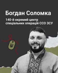 20 січня 2024 року, виконуючи бойове завдання на Запорізькому напрямку, 31-річний старший солдат Богдан Соломка загинув. Чоловік мав псевдо Паваротті — так його назвали військовослужбовці з Італії, які приїжджали до навчального центру. Богдан, побачивши їх, почав співати арію італійською.