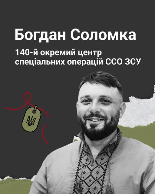 Богдан Соломка — соліст Рівненської обласної філармонії, актор театру й кіно. На війні — бойовий медик групи Сил спеціальних операцій. З початком повномасштабного вторгнення разом із татом і братом добровільно став до лав ЗСУ, служили в одному підрозділі.