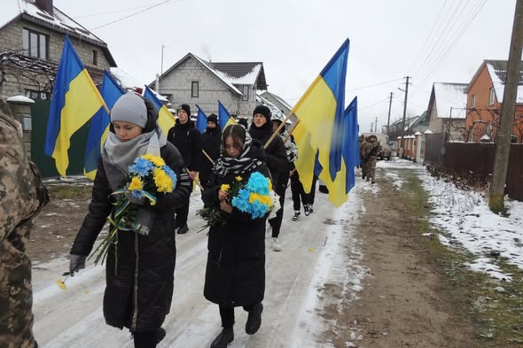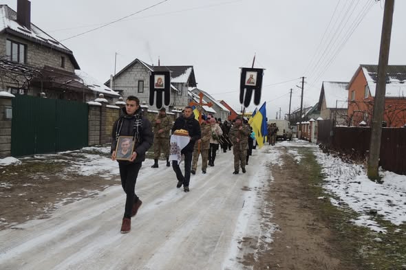 Похоронна процесія в жалобі тягнулася від батьківської оселі міськими вулицями, встеленими квітами до Свято-Миколаївського храму міста Березне, де відбулася заупокійна служба за захисником.